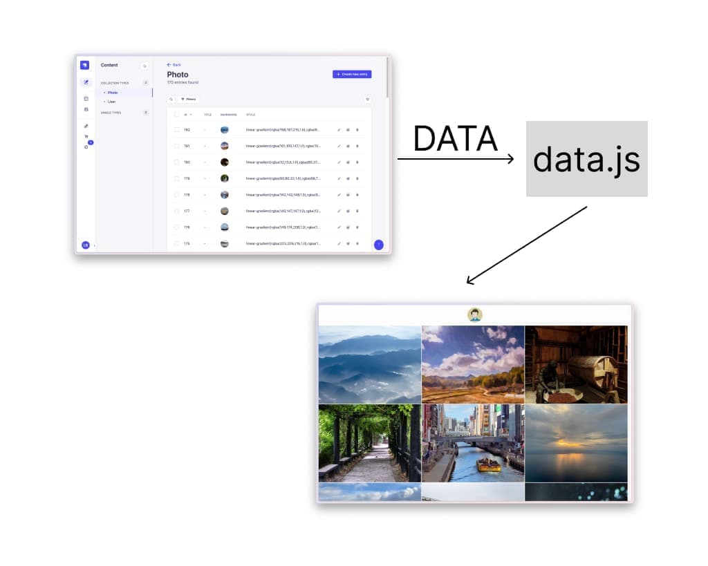 - 生成一个静态 JSON 数据文件来存储照片数据。每当发生 CRUD 操作时,都会创建或更新此文件。