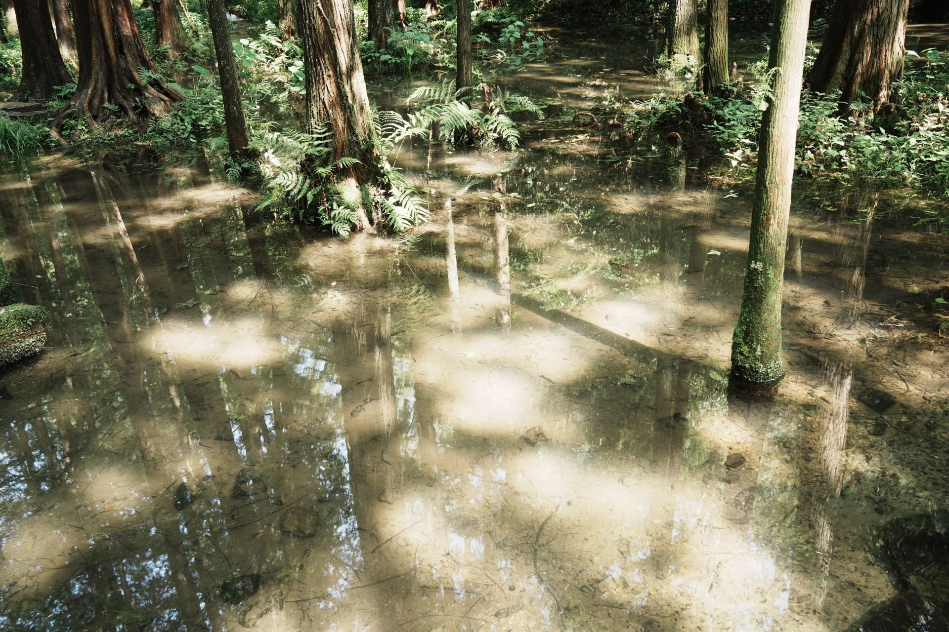 道路两旁都是森林、小溪、湖泊,吹过的风让人心旷神怡。坐公交也是非常棒,冷气很足,透过车窗看外面非常满足。